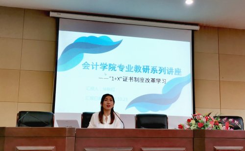 2019年10月23日下午,会计学院在南校区小报告厅开展了专业教研系列讲座——“1+X”证书制度改革学习,会计学院全体教师参加,会计系主任华秋红主讲。 华主任分别从如何理解1+X证书制度改革、高职院校如何进行1+X证书探索实践、如何理解1+X智能财税证书三个方面和大家分享了对“1+X”证书制度改革的学习与思考。 她强调职业教育改革发展的主题是“高质量发展”,1+X证书制度改革的目标是服务高质量发展,1+X证书制度改革的理念是“四化一体”,1+X证书制度改革的特点是多方参与。职业教育要做到育学生的“生”,训企业的“工”,培社会的“人”。职业教育要国际化、标准化、信息化、社会化。 在探讨高职院校如何进行1+X证书探索实践问题时,华主任提出院校落实1+X证书制度实施路径应分为六步:提升职教理念、优化人才培养方案、改革培养培训模式、打造教学创新团队、创新校企合作路径、拓宽社会服务面向。 此外,华主任还重点介绍了教育部批复的第二批1+X证书制度试点证书中的中联集团的1+X智能财税证书。 该证书的认证标准突出“1+X证书”与“职教20条”对学生操作技能的要求,并落实到操作动作的执行规范上。学习内容以财税龙头企业的业务为基础,对标工作岗位群,确定工作岗位时针对财税领域的全方位工作内容进行横向切分,形成中小微企业社会共享代理业务,再进行纵向切分形成企业的财务外包业务,横纵切分达到由浅入深,涵盖各类大中小微型企业,达到财税领域岗位就业的全覆盖。 通过本次讲座,全体教师对“1+X”证书制度改革有了更深入的了解,更新了职业教育发展理念,从理论上把握1+X证书制度的实质和内涵。