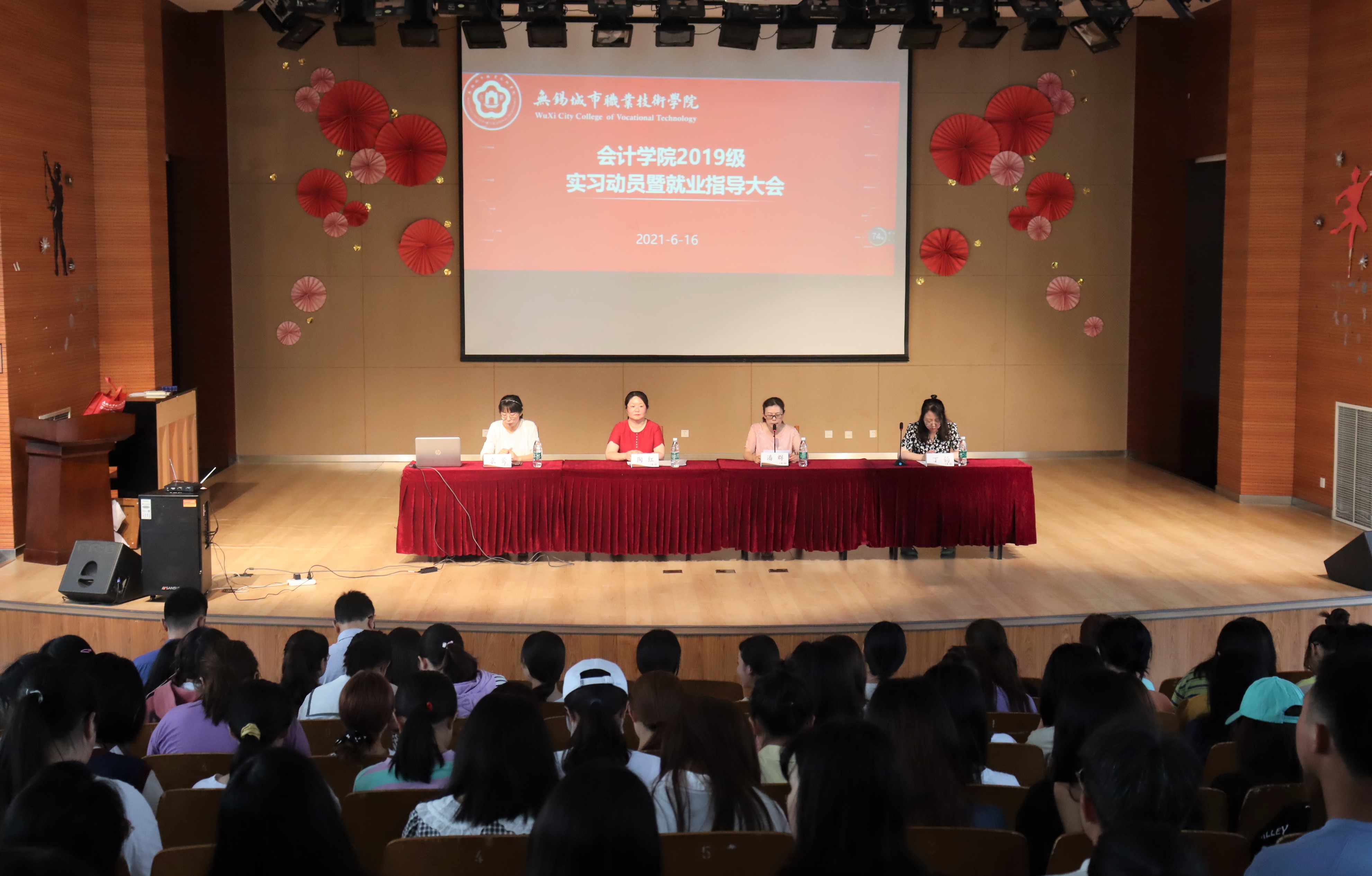 6月16日下午,会计学院在南校区学生活动中心小剧场举行2019级学生实习动员暨就业指导大会。会计学院党政领导班子成员出席会议,2019级班主任以及300多名实习学生参加会议。会议由会计学院党政办公室主任丁钧主持。 会上,会计学院副院长陶红作了动员讲话。她指出毕业实习是高校人才培养的重要实践教学环节,是学生学以致用、提高能力、步入社会的前提,将为学生就业、提高就业质量打下坚实基础。她鼓励学生在实习期间要重新审视自我,找准定位,勇于开拓,尽快实现角色转换,迎接新的岗位和环境。 随后,会计学院党总支副书记潘群进行实习安全教育。她要求同学们在实习期间要秉承“弘毅”校训,慎思笃行,不断提高安全生产意识和安全素质,提高了风险防范能力,圆满完成实习任务。 会计学院副院长袁莺就顶岗实习与毕业论文的撰写工作进行了详尽的指导。她分别从实习目的、方式、时间、内容、成绩评定等方面为同学们解读了实习的各项要求,对毕业论文的流程进行了说明。她希望同学们能将自己所学的理论知识和实践应用充分结合起来,处理好毕业论文写作与实习工作的关系。 最后,校企合作单位企业代表针对企业财务岗位进行了具体的就业指导。 本次动员大会对我院2019级学生的顶岗实习、毕业论文撰写、毕业就业等方面进行了很好的引导,使同学们认清了就业形势、明确了目标方向,对实习就业过程中可能存在的问题有了深刻的认识,为我院就业质量的提升奠定了坚实的基础。