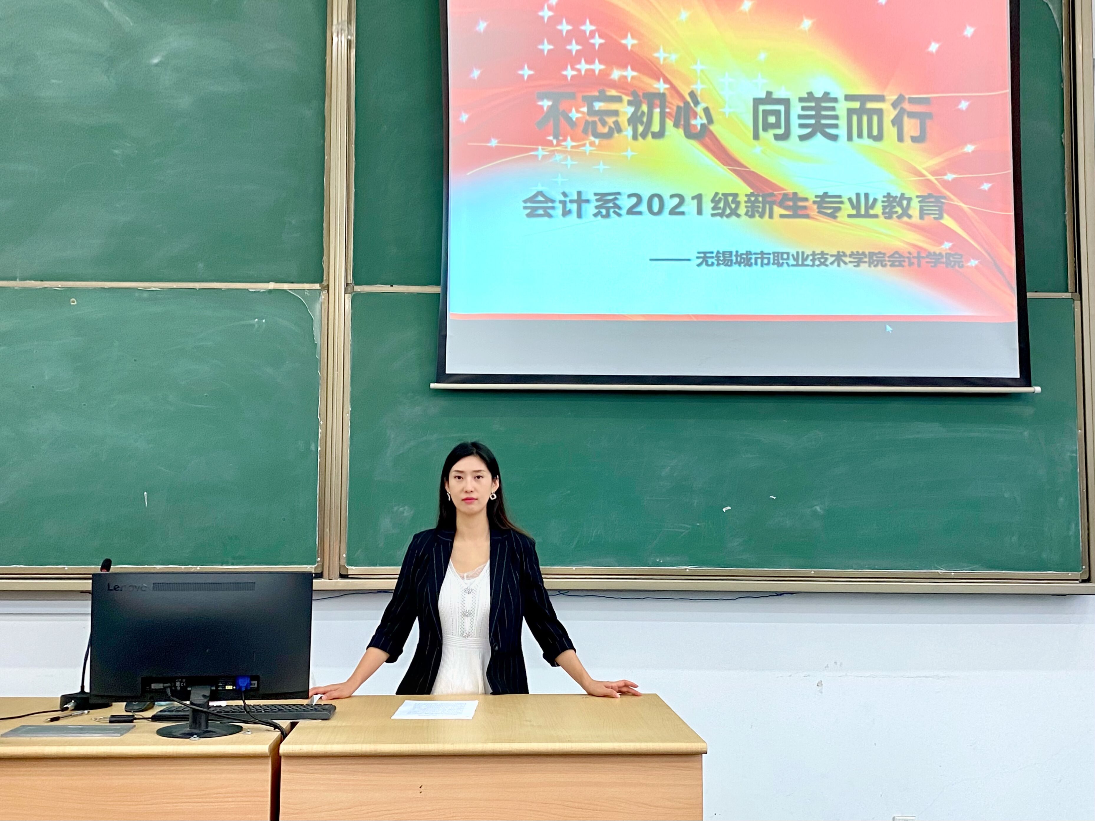 胡静强调了会计信息管理专业的职业面向,给学生厘清了在校期间的课程体系,强调了需要考取的资格证书,让学生未雨绸缪、虚心向学,不负青春阳光,不负诗与远方。