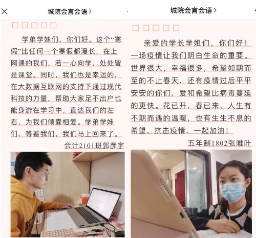 阳春三月醉时节,人间四月竞芳菲。面对开学以来的疫情防控形势,会计学院广大师生积极响应各级各地各类志愿服务号召,以“本地化、组织化、安全化”的“三化”原则,共同筑起联防联控、群防群控的疫情防控严密防线。 从“校内”到“校外” 走出一条“关怀路” 在会计学院党总支的领导下,会计学院根据不同工作需要,组建起一支支以党员、辅导员、班主任为主体的志愿服务队,为校内外学生搭建起“以生为本”的校园关怀平台。学期初,学院组建的“疫情防控党员志愿服务队”,分岗分层顺利迎接124名五年制学生返校;并由新组建的“疫情防控五年制班主任志愿服务队”负责该批学生在校期间的学习、生活与健康安全。在3月6日至3月21日五年制学生在校学习期间,“疫情防控五年制班主任志愿服务队”积极配合完成院校紧要管理事项超10项,参与紧急线上会议3次,2/3以上时间均需工作至晚8点后。 3月17日下午,在班主任吴相君老师的指导下,五年制会计1802班五位团员冒着大雨,有条不紊的将隔离在家的同学与走读生的教材书籍进行整理、打包、通知家长交接,确保了隔离同学和走读学生的基本学习需求。 在“学生疫情防控网格化管理”模式下,由学工辅导员、班主任组成的“疫情防控学工志愿服务队”,自开学以来,严格按照学校疫情防控工作领导小组的指示,落实疫情期间学生在线学习、心理关怀、防疫数据排查等工作,建立“辅导员值班台账制”、“班主任工作台账制”、“实习学生关怀台账制”等工作制度,以稳健的工作作风与热诚的教师关怀,推动各项学生工作落细落实。 从“教师”到“学生” 走出一条“同心路” 居家不停爱,云端不停学。会计学院师生心手相连,共克时艰,组建起一支由学院办公室、学工办公室、各系科、学生干部为主体的“‘同心’志愿服务队”。按照校教务处线上教学安排部署,学院教师每周及时登记《会计学院线上教学统计表》,认真备课,接受监督,确保“零教学事故”;此外,因系统技术问题导致的中职学生信息填报问题,会计学院周丽霞、钱文娟、邵明珠、杨惠婷等4名服务队教师义无反顾接受任务,配合学校进行数据手工录入。 同心战疫,必将迎来春暖花开,学院“‘会’乐战疫的我们”系列活动正在进行时。作为“‘同心’志愿服务队”里的学工辅导员,将春日里的校园记录进镜头,与学生记录下的春日家乡,相互间开启了一场镜头中的“空间对话”。同时,面对突发的疫情形势,以及“3·20”大学生心理健康周的到来,学院积极嫁接起一场“寄信予你春日等你”心理主题活动,让彼时还在校学习的五年制同学与居家学习的三年制同学之间,展开了一场温情的“隔空对话”。 从“党员”到“群众” 走出一条“引领路” 从寒假开始,各地防疫形势瞬息万变,复杂严峻。在全市各级各类组织的倡导倡议下,学院数名师生志愿者按照属地管理原则,主动投身防疫志愿服务。 以学院党员师生、领导干部为行动表率,党总支书记潘群带头加入辖区志愿服务队伍,配合社区完成疫情防控宣传、信息收集统计等工作;副院长陶红积极参与社区全员核酸检测相关工作,深受社区群众好评;学生支部书记王菲,不仅主动参与社区全员核酸证明发放,还紧急“补位”加入学校全员核酸检测志愿服务队伍,参与核酸检测扫码工作;党员教师谢磊主动报名社区防疫志愿者,参与服务至深夜;党员教师杨佳萍,关注到全市血库告急信息,加入无偿献血团队,为全市医疗救治提供自己的一份力量;入党积极分子周丽霞,积极参与社区网格化管理工作,配合完成疫情防控登记、秩序维护引导等多项工作;6名学生预备党员,也纷纷用实际行动弘扬正能量,助力家乡打赢疫情防控战,彰显了“诚才”先锋榜样的青春力量。 4月15日,面对受疫情影响的校内食堂窗口职工马尔沙夫妇一家,学院党员干部、党员教师、入党积极分子、各民主党派教师以及教职工群众积极响应,纷纷献出爱心,短短半天的时间,就收到26位老师的捐款2700元。 爱心情无价,闪耀“志愿红”。会计学院师生的同心同向,将凝结更大的新生力量,推动学院工作不断迈上新台阶! |