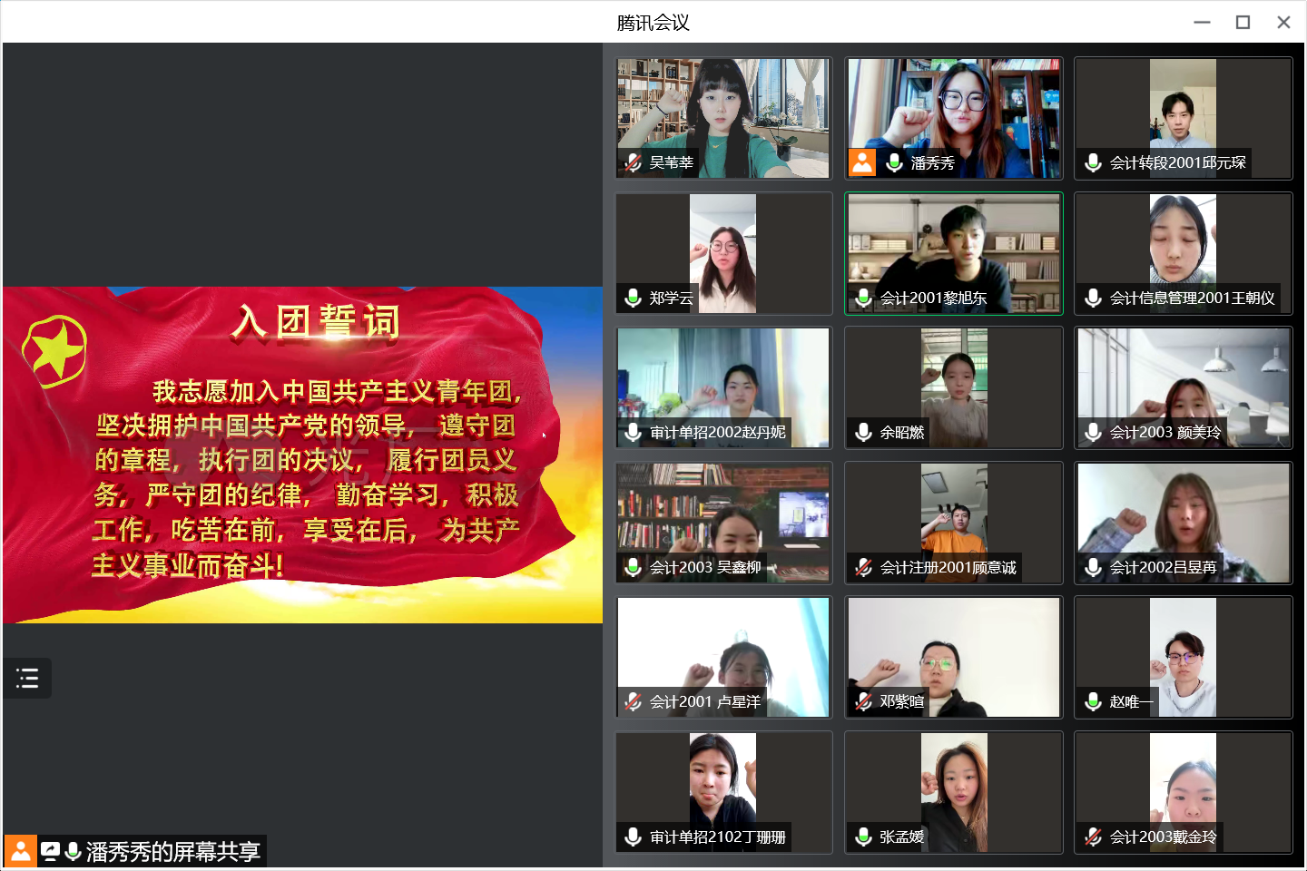 2022年是中国共产主义青年团成立100周年,回望百年路,青春正当时。活动最后,潘秀秀老师带领大家在鲜艳的团旗下重温入团誓词,右手握拳许下青春誓言,是对前行者的致敬,是红色基因的传承,也是我们对共青团最长情的告白。誓词铿锵有力,也将激励着每一位青年坚定理想信念,切实扛起历史使命和时代担当。 |