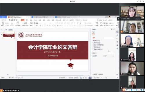 2022年5月25日,会计学院组织329名2022届毕业生进行了论文答辩。由于疫情防控原因,本次答辩采用线上会议的形式,共有31名教师参加答辩,分设10个线上答辩会场。