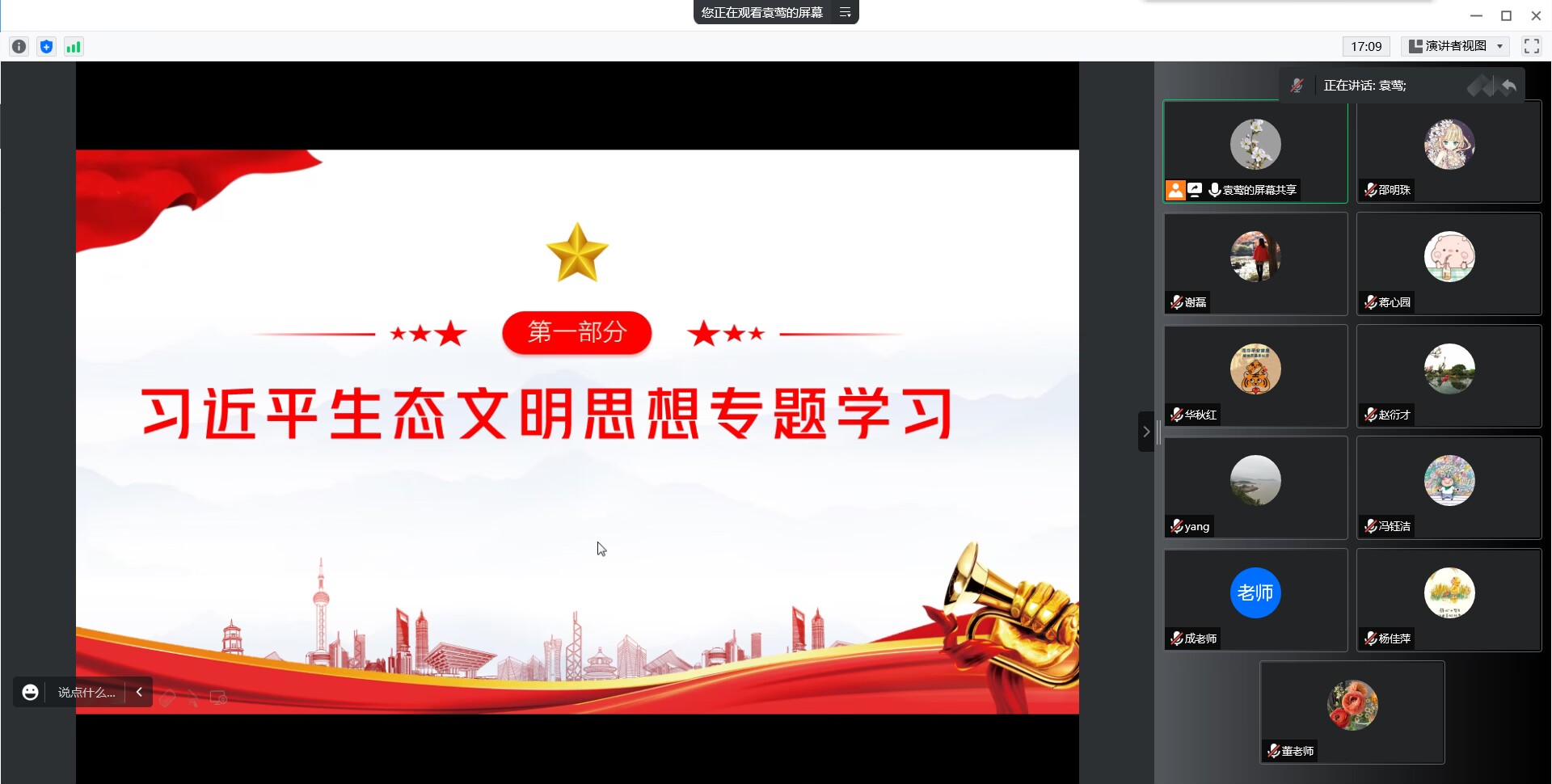 9月7日下午,为贯彻落实近期习近平重要讲话及重要理论书籍学习要求,会计学院教工党支部开展集中学习活动,其中重点组织了《习近平生态文明思想学习纲要》专题学习、《百年初心成大道——党史学习教育案例选编》介绍推荐、《习近平谈治国理政》第四卷心得讨论等,活动由教工支部书记袁莺主持及领学,党员老师积极参加。 学习过程中,全体党员共同观看了中共中央党校社会和生态文明教研部李宏伟教授主讲的《习近平生态文明思想》专题讲座,会计学院教工支部书记袁莺为大家讲述了习近平生态文明思想的丰富内涵,归纳为文明观、自然观、价值观、发展观、治理观和共赢观,总结了习近平生态文明思想的理论特质和实践指向。 其次,教工支部书记袁莺随后向党员们介绍了《百年初心成大道——党史学习教育案例选编》的主要内容和经典案例,在“感悟崇高精神,致敬革命先辈”内容中,111所高校师生深情讲述对长征精神、雷锋精神、脱贫攻坚精神等的理解,讲述内容贯穿各个历史时期,感人的历史和故事,激励着高校师生不渝奋斗,再谱青春之歌,走好新时代的长征路。 集中学习后,教工支部分小组就学习《习近平谈治国理政》第四卷撰写的心得体会进行交流,老师们热烈讨论,各抒己见。 大家纷纷表示,本次学习深化了自身对习近平总书记重要讲话、重要理论书籍精神的理解和认识,学习中将理论紧密联系实际,与学校当前重点工作结合起来,与谱写“十四五”学校高质量发展新篇章结合起来,提升思想和行动的统一性,在工作、生活中严于律己,奋勇争先,以实际行动迎接党的二十大胜利召开。 |