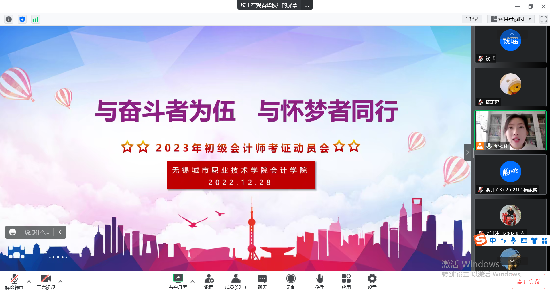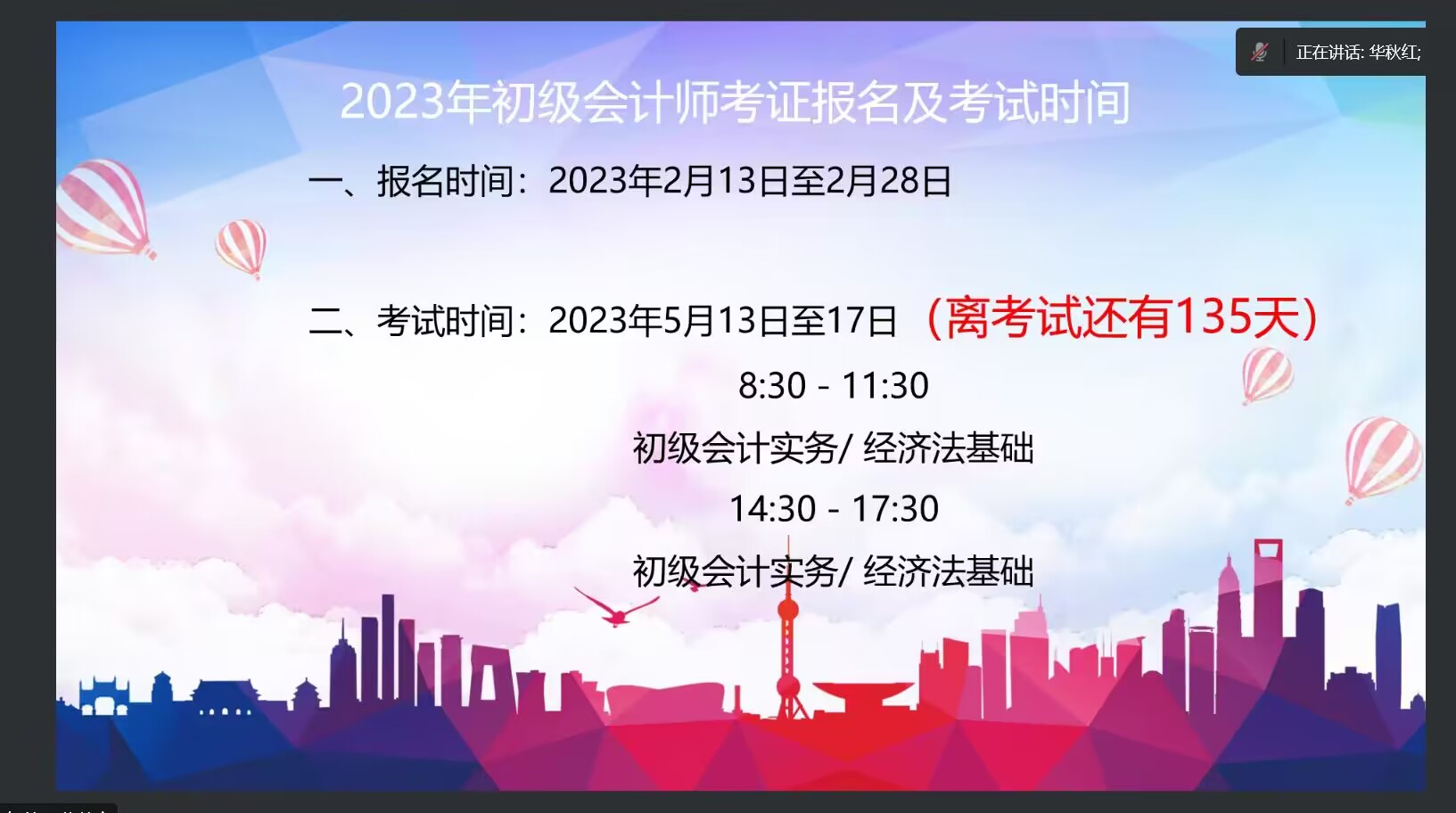 12月28日下午,会计学院通过线上会议方式召开了2023年初级会计师考证动员会。会计学院副院长华秋红、会计(3+2本科)2101班和会计(3+2本科)2201班班主任、全班学生以及其他班级的学生代表参加会议,会议由华秋红主持。 考证动员会共分四项议程。首先,会计(3+2本科)2101班优秀学生代表陈礞宇同学分享了自己从零基础到取得初级会计师证书的宝贵经验。接着,会计(3+2本科)2101班和2201班班主任分别针对本班的具体情况进行了23年初会考证考前学习部署。 华秋红提出了23年初级会计师考证的目标,她希望每位同学都能够坚定考证目标,认真复习、努力拼搏,把梦想变成时间表、路线图和进度条。做到时不我待、只争朝夕;坚定目标、勇毅前行;付出努力、收获成功。 最后,会计(3+2本科)2201班级优秀学生代表沈欣玥同学进行了考证表态发言,表示要坚定决心,努力学习,争取一举通过2023年初级会计师考试。 本次考证动员会让学生们更加清楚了初级会计师考试的报考流程,也更加明确了初级会计证书的重要性。学生们纷纷表示本次会议收获颇丰,接下来将积极备考,制定合理的规划,争取顺利取得初级会计师证书。 |