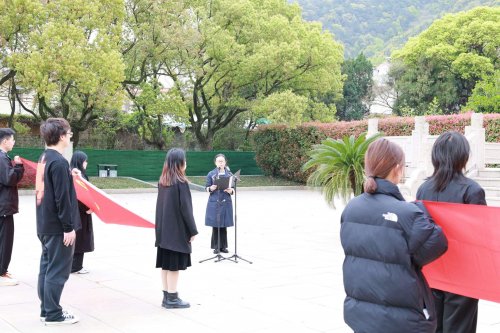 全体师生代表肃立默哀 接着,会计学院党总支书记潘群在纪念碑下宣读祭文,感恩烈士们用宝贵生命换来了祖国今天的繁荣昌盛,同时寄语师生们要以先辈先烈为榜样,不断筑牢信仰之基,补足精神之钙、把稳思想之舵,以坚定的理想信念砥砺对党的赤诚忠心。