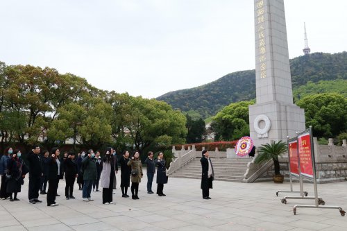 “缅怀先烈祭英灵,不忘初心思奋进”。为缅怀革命先烈,传承红色基因,在清明节来临之际,会计学院党总支组织师生赴无锡市革命烈士陵园开展清明节祭扫活动,祭奠革命前辈,向英勇献身的革命烈士表达我们崇高的敬意。 4月3日下午一点半,我们来到庄严肃穆的无锡市革命烈士陵园,57名师生代表排着整齐的队伍有序地进入烈士陵园。烈士陵园在苍松翠柏的映衬下显得格外庄严肃穆,祭扫仪式由会计学院党总支副书记左占卫主持。首先由两名青年学生代表缓缓向烈士敬献花圈开始。我们在墓碑前,肃立默哀,向长眠的烈士们寄予无限哀思,共同缅怀革命英烈的浩然正气。