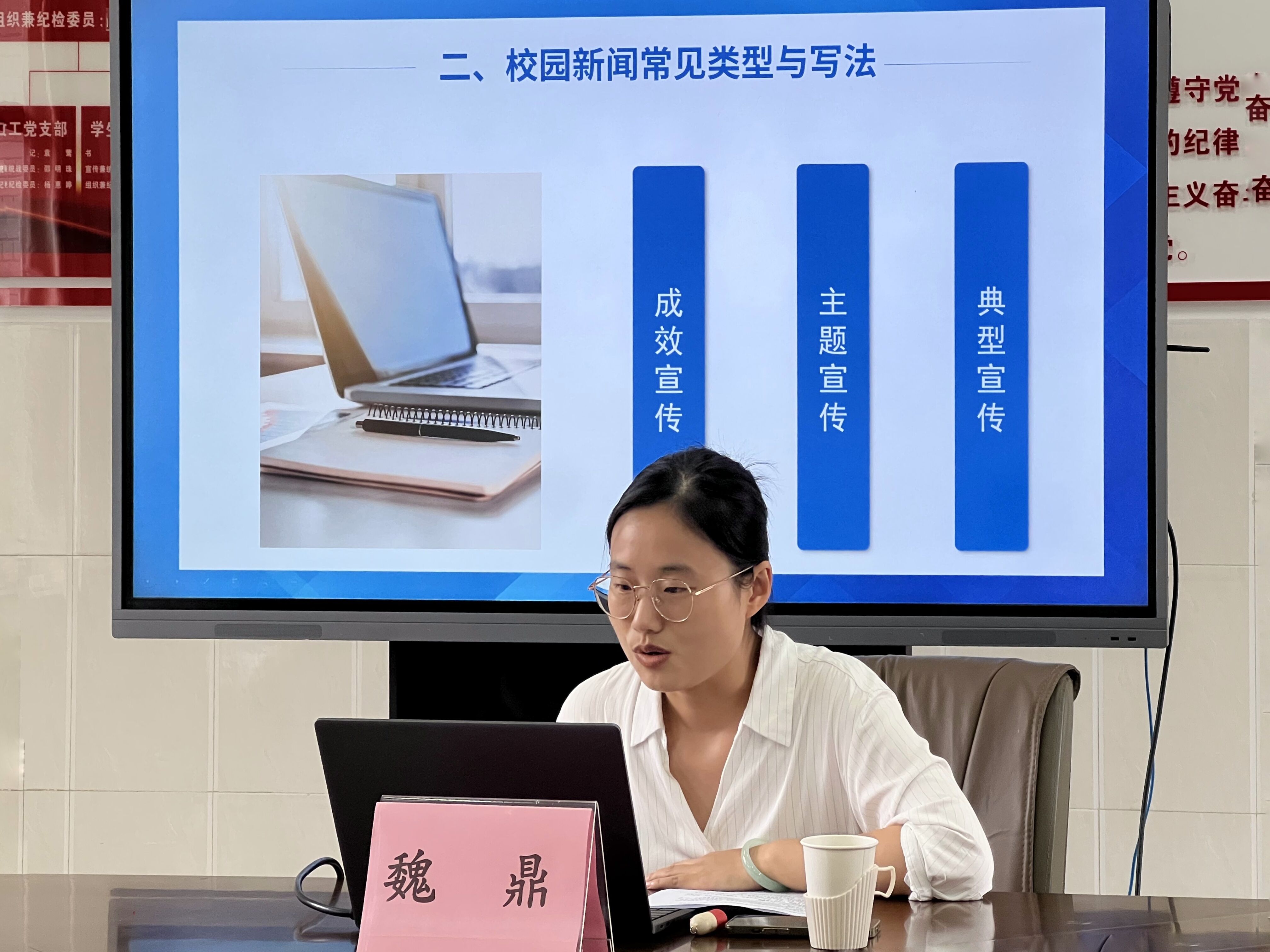 2023年9月20日,会计学院在3411会议室举行校园新闻宣传工作实务主题讲座。本次讲座邀请到校党委宣传部宣教科科长魏鼎作为“导师”,为会计学院各条线宣传骨干们上了一堂新闻写作培训“好课”。讲座由学院党政办主任丁钧主持。
