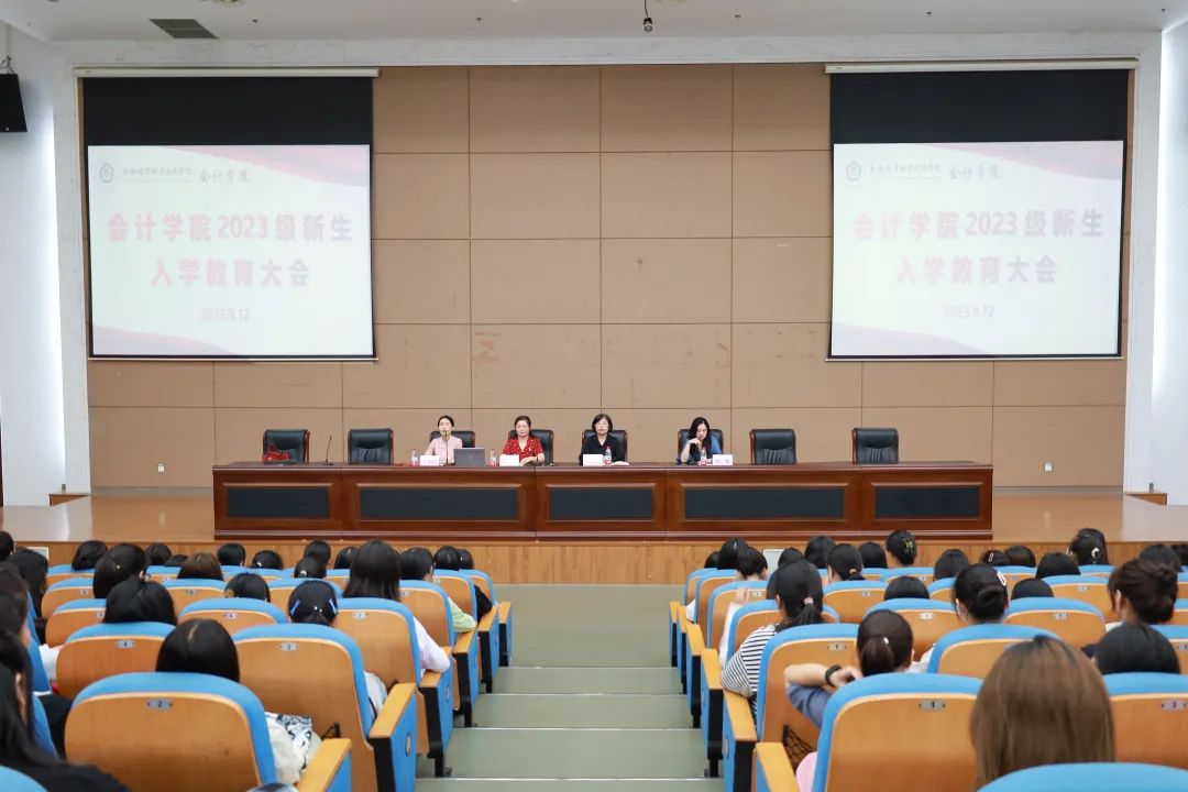 为教育和引导新生合理规划人生,以昂扬的精神面貌迎接全新的大学生活,筑牢思想之基,激起奋斗之志。9月12日下午13:00,会计学院在南校区大报告厅召开2023级新生入学典礼。会计学院党政领导、全体辅导员、班主任、2023级全体新生参加了会议。 会议伊始,会计学院副院长陶红对2023级新同学的到来表示欢迎,她希望同学们在大学遇见更好的自己,成就美好人生。随后她介绍了会计学院的办学历史、专业荣誉和师资力量,希望同学们坚持树立远大理想,找准人生赛道,同时也要提高学习能力,实现自己我提升。 会计学院副院长华秋红向新生阐述了我校弘毅校训的含义,并详细阐述了三年专业学习内容及未来就业前景,让同学们对所学专业有了更深的了解,她勉励同学们珍惜时光,刻苦学习,增长本领,尽快融入到新的学习生活中,确定未来职业生涯的发展规划。 会计学院党总支副书记左占卫希望2023级新生在城院能够学会从思考中确立自我,从挫折中磨练自己,从学习中明确目标,努力适应新的环境与挑战,她提出了五点希望:1、夯实基础,自主学习 2、广泛读书,获取力量 3、培养创新思维和创新能力 4、要有坚韧不拔的毅力5、要有浓郁的家国情怀。 新教师代表王紫薇发言。她向新生强调了大学教育的意义和重要性,鼓励同学们主动转变角色,积极适应大学学习和生活,学会自我管理、自我教育、自我监督,她送给新生三个字寄语:“学”字,为先坚定理想信念,“诚”字,为基涵养清风正气,“干”字,为要成就精彩人生。 会计2302班刘畅代表会计全体新生发言。她分享了自己对于青年人的“使命与担当”的理解。青年人肩负着民族复兴的历史重任,应保持心怀天下的广阔胸襟,一代代青年人人以个人萤火点亮时代火炬,照亮前行道路。她祝愿同学们都能在城院、在会计大家庭里找到自己的价值追求所在,让内心梦想的种子长成大树,开花结果。 本次会计入学典礼的召开,有助于增强2023级会计学子对学校、院系的认识,更快更好地适应大学生活。新学期、新气象、新起点,祝全体2023级会计新生在未来的三年里,追光而遇,沐光而行,踏上梦想跑道,以奋斗之笔书写新征程精彩篇章!(文/图:王紫薇;审核:左占卫) |