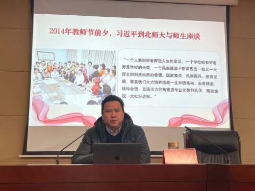 为深入学习贯彻习近平新时代中国特色社会主义思想,不断涵养高尚师德,打造风清气正的教育生态,1月3日,会计学院邀请校党委委员、纪委书记吴开勇同志作题为《学为人师行为世范》师德师风专题讲座。会计学院全体教职工参加了专题讲座,讲座由会计学院党政办公室主任丁钧主持。 吴开勇从北京师范大学校训“学为人师行为师范”切入,重点围绕2014年习近平总书记考察北京师范大学时勉励广大师生提出的“四有”好老师的具体内容进行解读,并用三个词“热爱”、“责任”和“荣誉”对怎样做一名好老师阐述了自己的观点和看法。他强调,立德树人不仅是学生个人发展的根本要求,更是时代的必然需要。德教为先,修身为本。就国家而言,“德者,国之基也”;就学校而言,“德者,民之信也”;就个人而言,“德者,才之帅也”。一名教师,一定要先修德,再育人。他指出,热爱就是爱党爱国、热爱事业和热爱学生。好老师应该做中国特色社会主义共同理想和中华民族伟大复兴中国梦的积极传播者,帮助学生筑梦、追梦、圆梦,让一代又一代年轻人都成为实现我们民族梦想的正能量。他希望大家努力在敬业、高标准、团队精神以及奉献四个方面充分体现教师责任。此外,吴书记还分析了教师职业倦怠的原因,并提出激发教师职业荣誉感的重要性和实施路径。 会计学院党总支副书记左占卫在总结时表示,感谢吴书记为大家带来一场精彩的讲座,让学院教师再次深切感受到了“何谓师德”,对为师之道有了新的感悟和见解,加深了对新时代师德师风内涵的理解。 学院将持续推进师德师风建设工作,深入学习宣传贯彻习近平总书记教师节的重要指示精神,引导教师不忘立德树人初心,牢记为党育人、为国育才使命。(文:蒋心园;图:朱庆时;审核:左占卫) |
