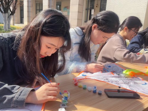 本次活动共分为两个环节。在风筝DIY环节,同学们纷纷发挥想象与创意,用画笔勾勒出图案、用色彩填满风筝,将个人内心中最美的风筝努力呈现。每一个风筝都承载着参与者的心灵寄托与美好愿景。制作完毕后,到操场将风筝放飞,同时放飞的是他们用双手绘制出的对未来的展望。同学们或拉线奔跑,或驻足欣赏,尽情享受着风筝带来的乐趣与心灵的释放。