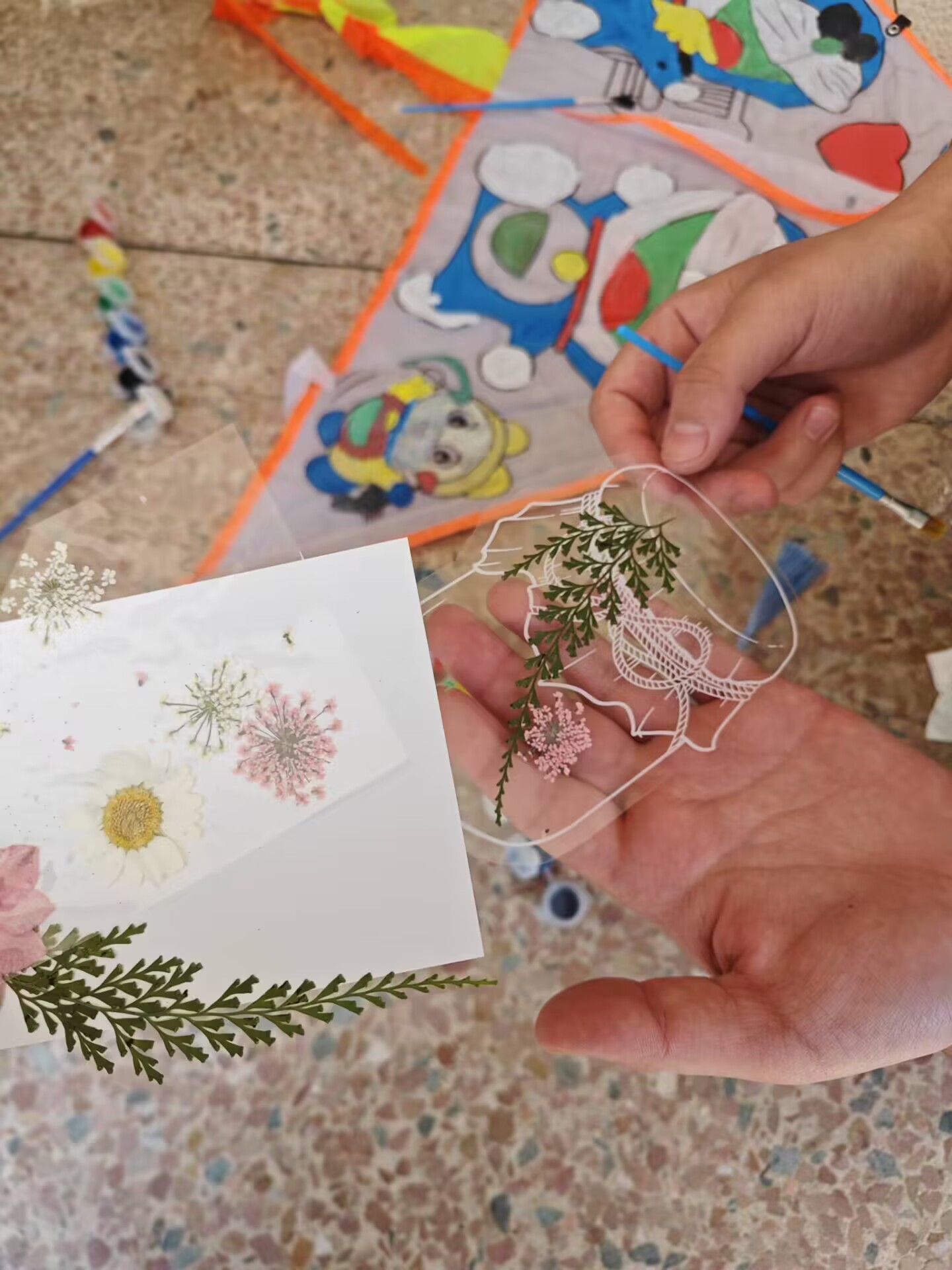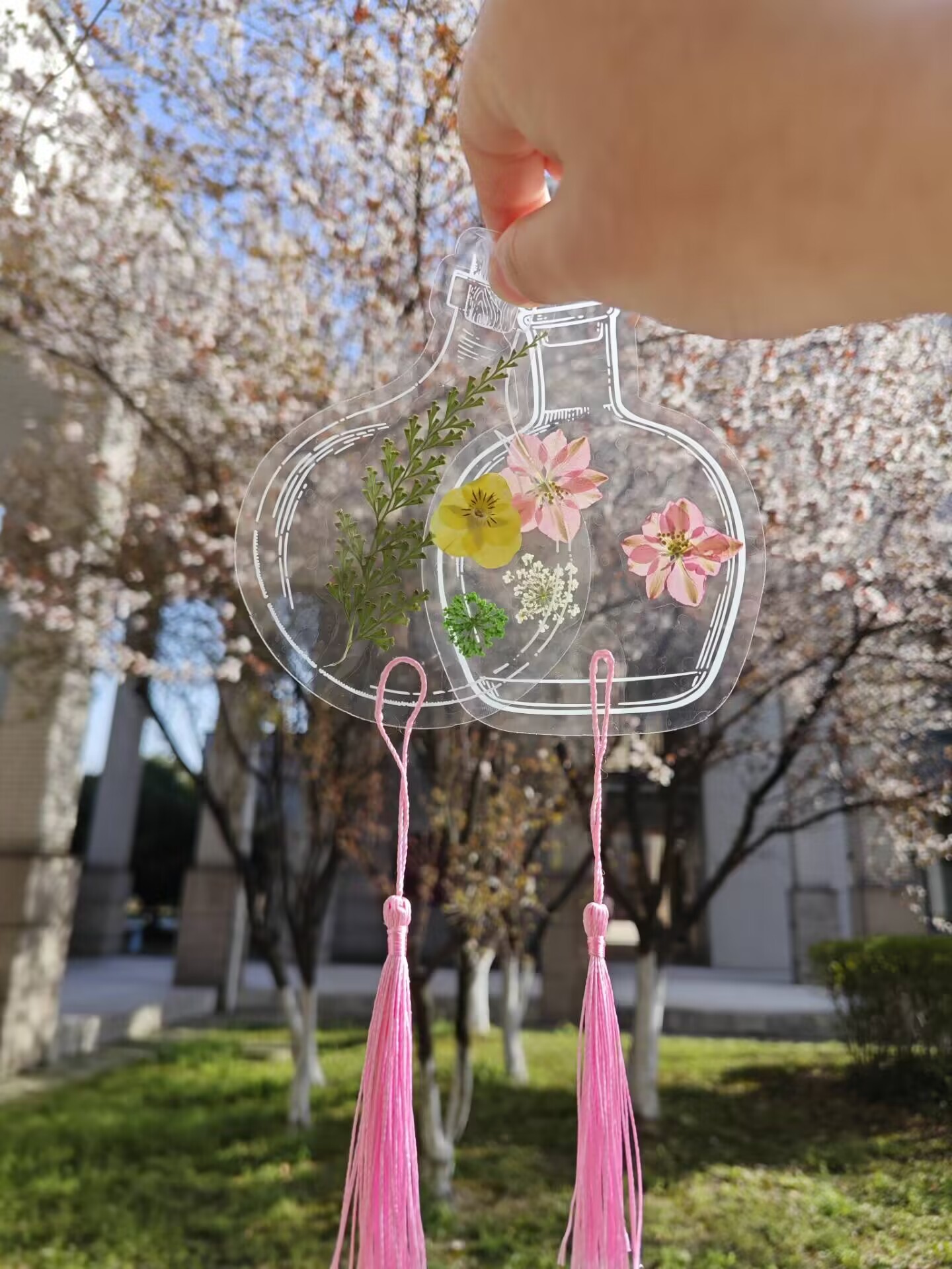 在干花书签DIY环节中,同学们将收集到的已掉落的花瓣和树叶按照自己的喜好,摆放在书签上,用胶水固定,在空白处写上激励的话,最后用塑料膜封存美好。精美的干花书签让同学们发现生活的美,明白生活的小确幸。