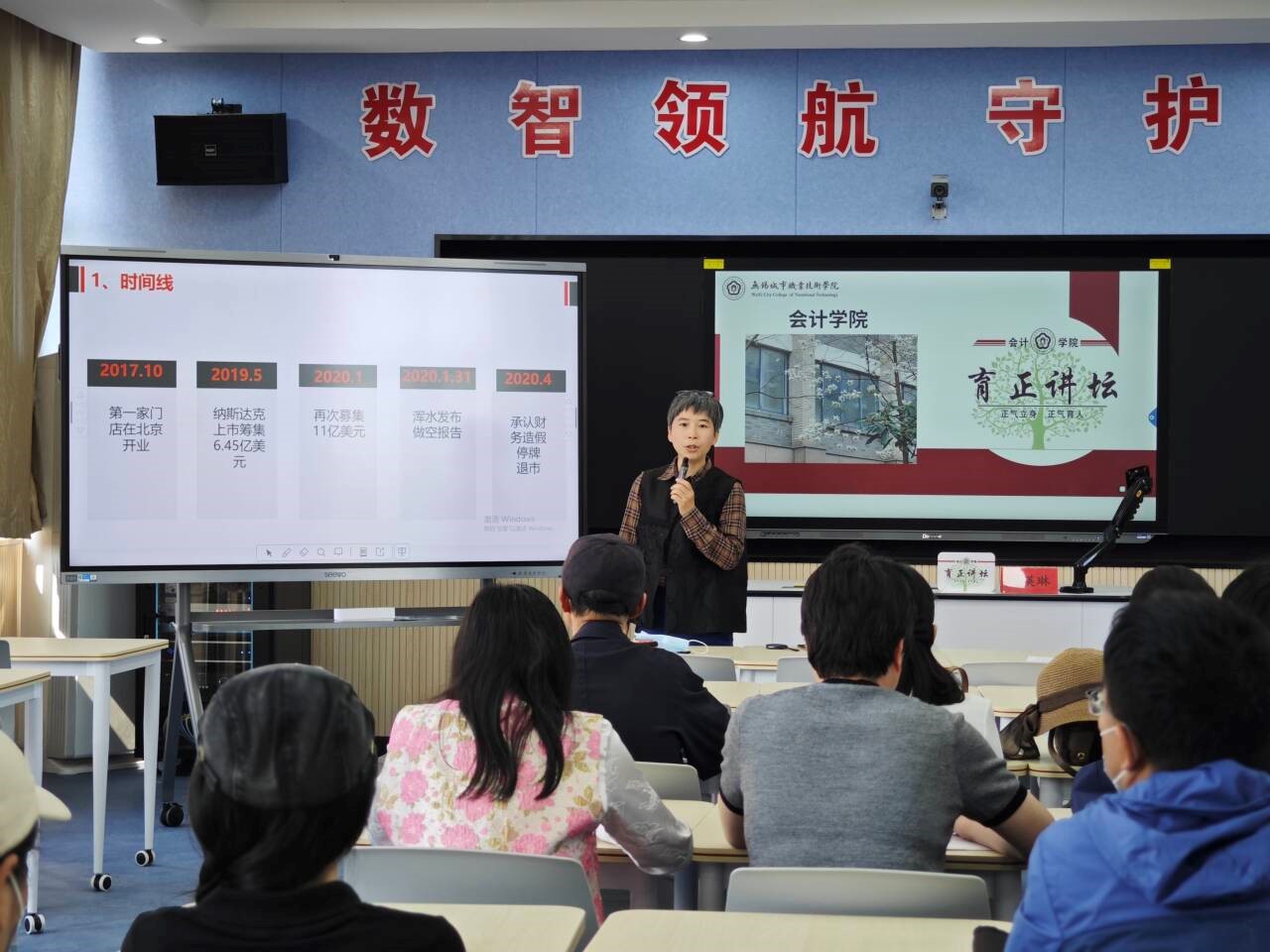 5月8日下午,“育正讲坛”第二讲正式开讲。会计学院副教授胡瑛琳以《瑞幸咖啡的前世今生(由混沌到秩序)》为题,围绕“前世运作——混沌”和“今生展望——秩序”两条主线,对当下最火的“小蓝杯”咖啡——瑞幸咖啡(luckin coffee)财务造假被曝光前后的经营发展进行了深度解读分析。 胡瑛琳介绍了瑞幸咖啡财务造假曝光前的成长时间线、前期商业模式及数据以及做空者的手法和做空报告的内容,用通俗易懂的数据计算与分析,剖析了瑞幸如何利用“虚增收入”和“虚增费用”创造“盈利”神话的原理真相。最后,胡瑛琳通过现在瑞幸咖啡的消费和运营数据,说明它能够卷土重来、涅槃重生的原因,并对这一中国咖啡品牌的发展给予美好的祝福和期许。 育正讲坛现场 通过学习,老师们对于企业粉饰收益的动机、手法都有了一定的认知。主讲人胡瑛琳表示本次讲坛的内容《内部审计学》备课过程中挖掘出的内容。“育正讲坛”为会计学院教师提供了自我展现的舞台,有力地推动了学院教师们积极开展教学教研。(文:徐彦; 图:丁钧 ;审核:陶红) |
