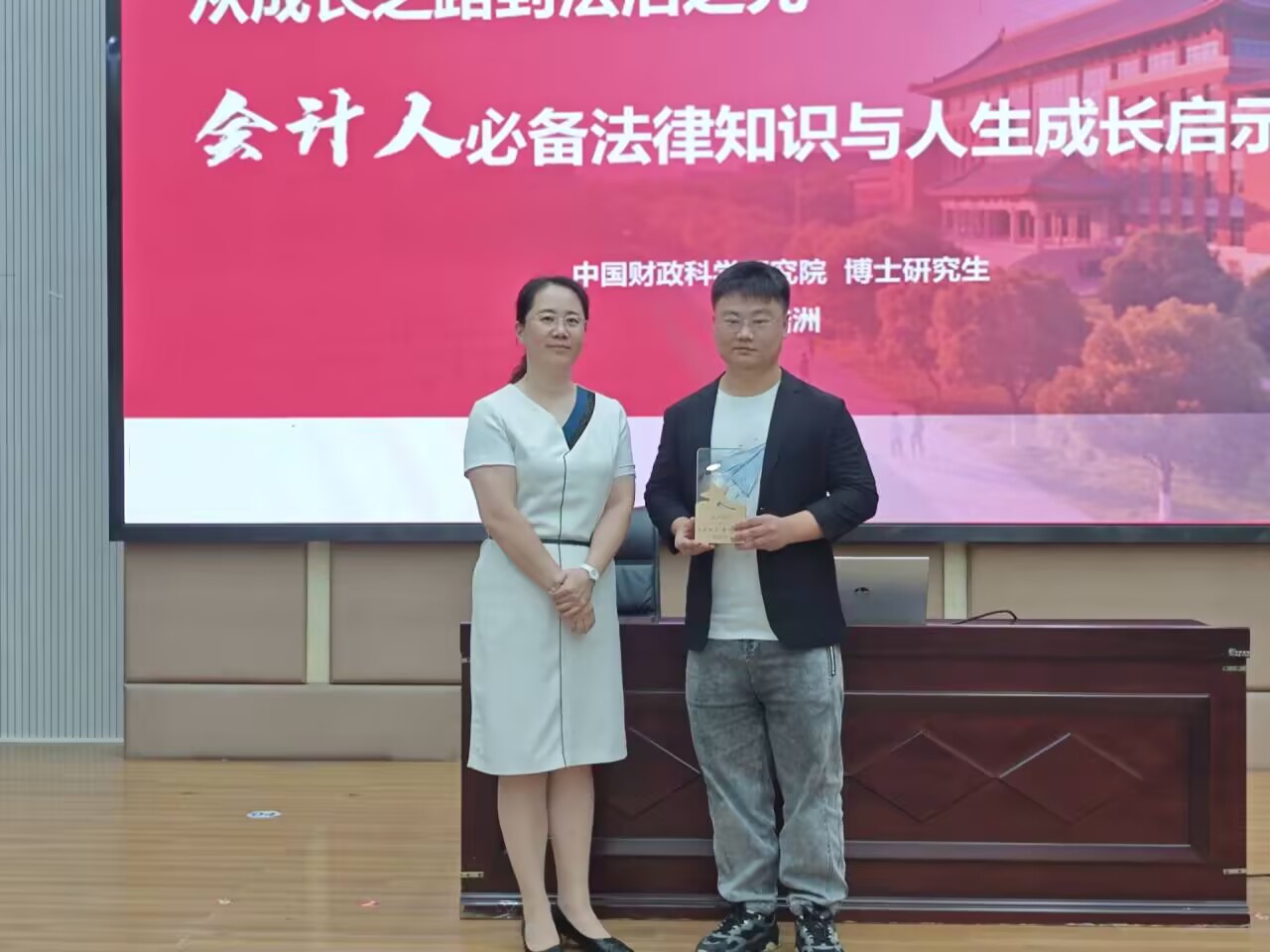 为提升学生法律素养、助力职业成长,10月17日下午,会计学院优秀校友、中国财政科学研究院博士研究生殷皓洲重返母校,在北校区小报告厅带来“从成长之路到法治之光——会计人必备法律知识与人生成长启示”专题讲座,会计学院百余名师生参与。 讲座遵循青年身心发展规律与认知特点,以“宪法教育为核心、民法典教育为重点”,精准聚焦学子成长需求。殷皓洲结合会计专业特性与自身实践经验,将法律知识与校园学习、家庭生活、社会活动场景深度结合——既讲解财务合规、审计风控等会计工作中的法律边界,也普及学生权益保护、民事纠纷处理等日常法律常识。同时,他通过解读中华优秀传统法律文化典故、分析社会主义法治理念内涵,引导学子理解法治内涵,筑牢法治根基。 讲座后,活动进入互动交流环节。会计学子围绕“法律知识如何融入会计专业学习”等问题踊跃提问。殷皓洲结合自身从专科到博士的成长经历,逐一耐心解答,现场掌声不断。 活动最后,会计学院党总支书记杨萍为殷皓洲颁发“优秀校友” 纪念奖杯,希望殷皓洲校友的成长历程,能够成为会计学子“锤炼专业本领,涵养法治素养,成就职业发展”的力量。 此次校友讲座为会计学子搭建了从校园到职场的成长桥梁,传递了专业知识与法治理念,以榜样力量激励青年学子在成长之路上坚守初心。未来,会计学院将持续发挥校友资源优势,为学生成长成才提供更多助力,激励广大学子以优秀校友为榜样,在逐梦路上砥砺奋进,书写青春华章。本次讲座在学院关工委的关心指导下顺利开展。(文/图:潘秀秀;复审:郭媛;终审:杨萍) |