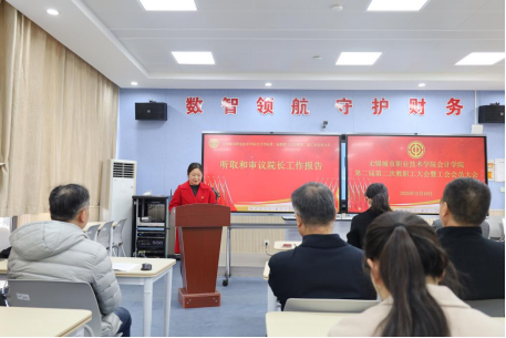 12月10日下午,会计学院召开二届二次教职工大会暨工会会员大会。会计学院党政负责人以及全体教职工参加了大会。会议由会计学院分工会主席、党政办公室主任丁钧主持。 大会在庄严的国歌声中开幕。 会计学院副院长陶红向大会作《院长工作报告》。报告以“强化党建引领、深化内涵建设,奋力谱写会计学院高质量发展新篇章”为主题,对学院2025年的主要工作以及取得的成绩进行了全面回顾总结,分析了当前面临的形势和机遇,提出了下一年度学院工作要点。她指出会计学院将凝聚全院师生合力,以开拓创新的精神、求真务实的作风,聚焦目标,狠抓落实,确保年度各项计划任务圆满完成,奋力开创学院高质量发展新局面。 大会听取、审议并通过了《院长工作报告》和《会计学院分工会工作报告》。 会计学院党总支书记杨萍在总结讲话指出,本次会议是在深入学习贯彻党的二十大精神、全面落实学校第三次党代会部署、扎实推进“十四五”收官与“十五五”开局的关键时期召开的一次重要会议。她希望全体教职工进一步提高政治站位,凝聚发展共识;持续聚焦内涵建设,切实提升育人质量;不断强化责任担当,狠抓工作落实;大力弘扬团结奉献精神,共同建设和谐学院。要以更加饱满的热情、昂扬的斗志和扎实的作风,凝心聚力、锐意进取,全力推动会计学院各项事业取得新突破、迈上新台阶,为学校高质量发展与服务区域经济社会发展贡献更大力量。 大会圆满完成各项议程后,在团结激昂的《国际歌》中胜利闭幕。 本次大会进一步凝聚了共识、明确了方向,为提升学院民主管理、科学决策水平及教职工权益保障奠定了坚实基础。会计学院全体教职工将以此次大会为新起点,同心协力,奋力谱写学院高质量发展的新篇章。(文:潘秀秀;图:朱庆时;复审:丁钧;终审:杨萍) |